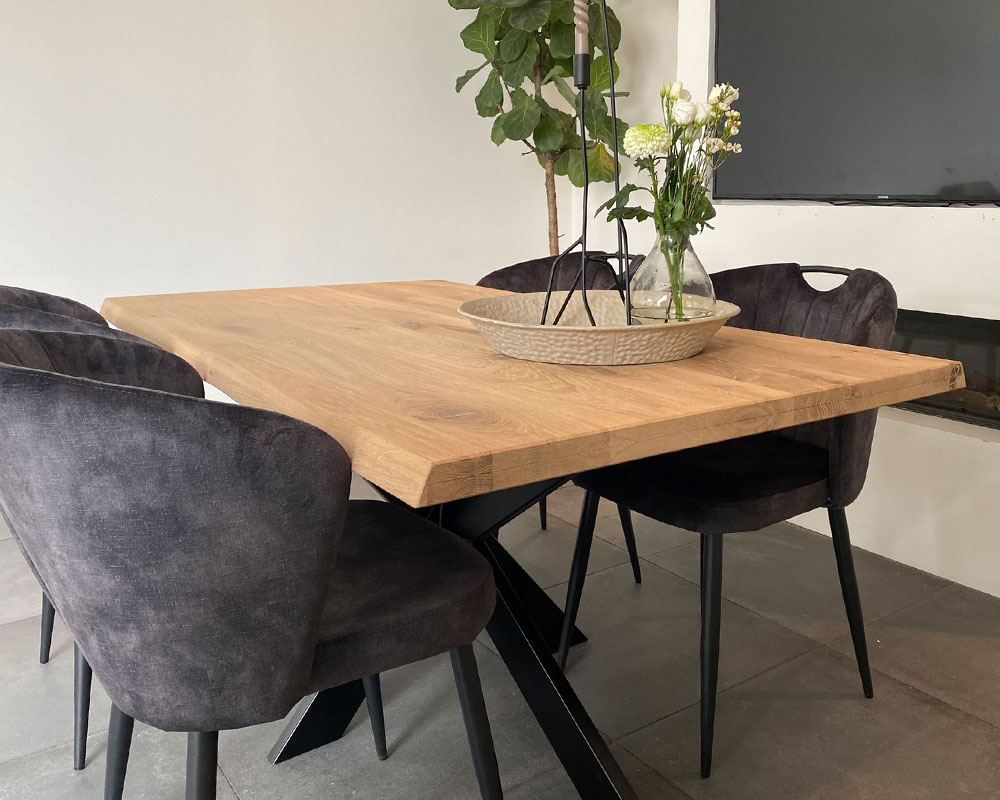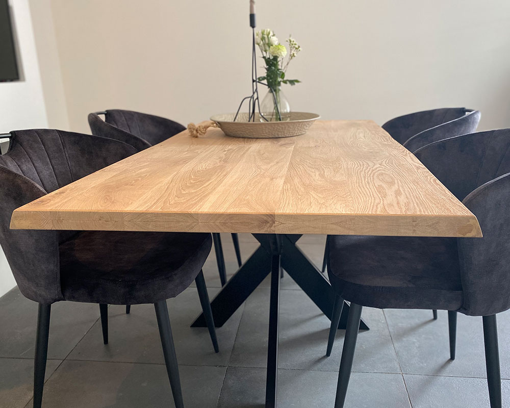 Onze tafels zijn standaard geschuurd en onbehandeld. Je kan ervoor kiezen om het tafelblad door ons te laten behandelen tegen vlekken en kringen, maar uiteraard kan je dit ook zelf doen. Mocht je de tafel in een andere kleur willen hebben, dan is dat mogelijk in overleg.