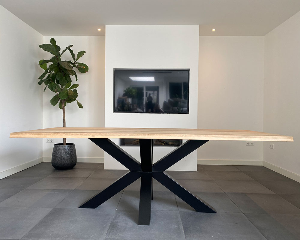 Tafels zijn vaak het middelpunt van de kamer. Wij snappen heel goed hoe belangrijk een goede tafel kan zijn. Onze boomstamtafel heeft een stoere, industriële uitstraling door het zwarte onderstel. Doordat deze tafel een mooie subtiele afwerking heeft ten opzichte van een rechte tafel, geeft dit een speelser effect. Een boomstamtafel in uniek pronkstuk in ieder huis!
